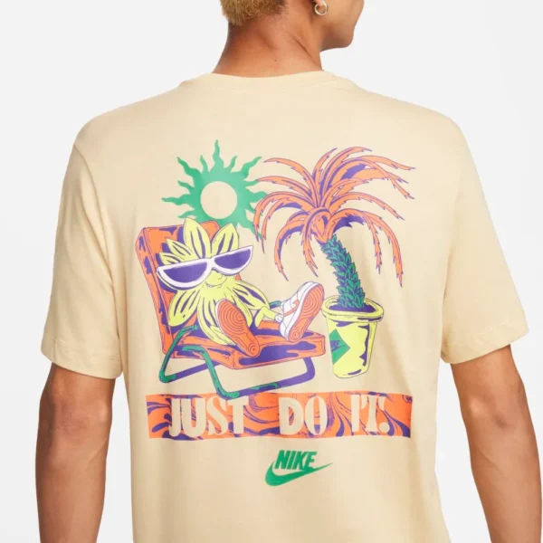 Impecable y clásica, esta camiseta Nike está confeccionada con algodón ligero para brindar comodidad suave para el día a día. Tiene un corte holgado en los hombros y el cuerpo que brinda un look atlético que puedes combinar fácilmente con otras prendas. Los gráficos estampados te preparan para el sol y agregan ese acabado exclusivo Nike.